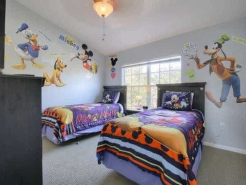 The highlight of this condo is the Disney themed kids bedroom which has bunk beds that can sleep 4 people (twin + full + twin trundle).