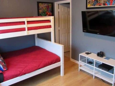 The kids' bedroom features a PS4 game system complete with gaming chairs.